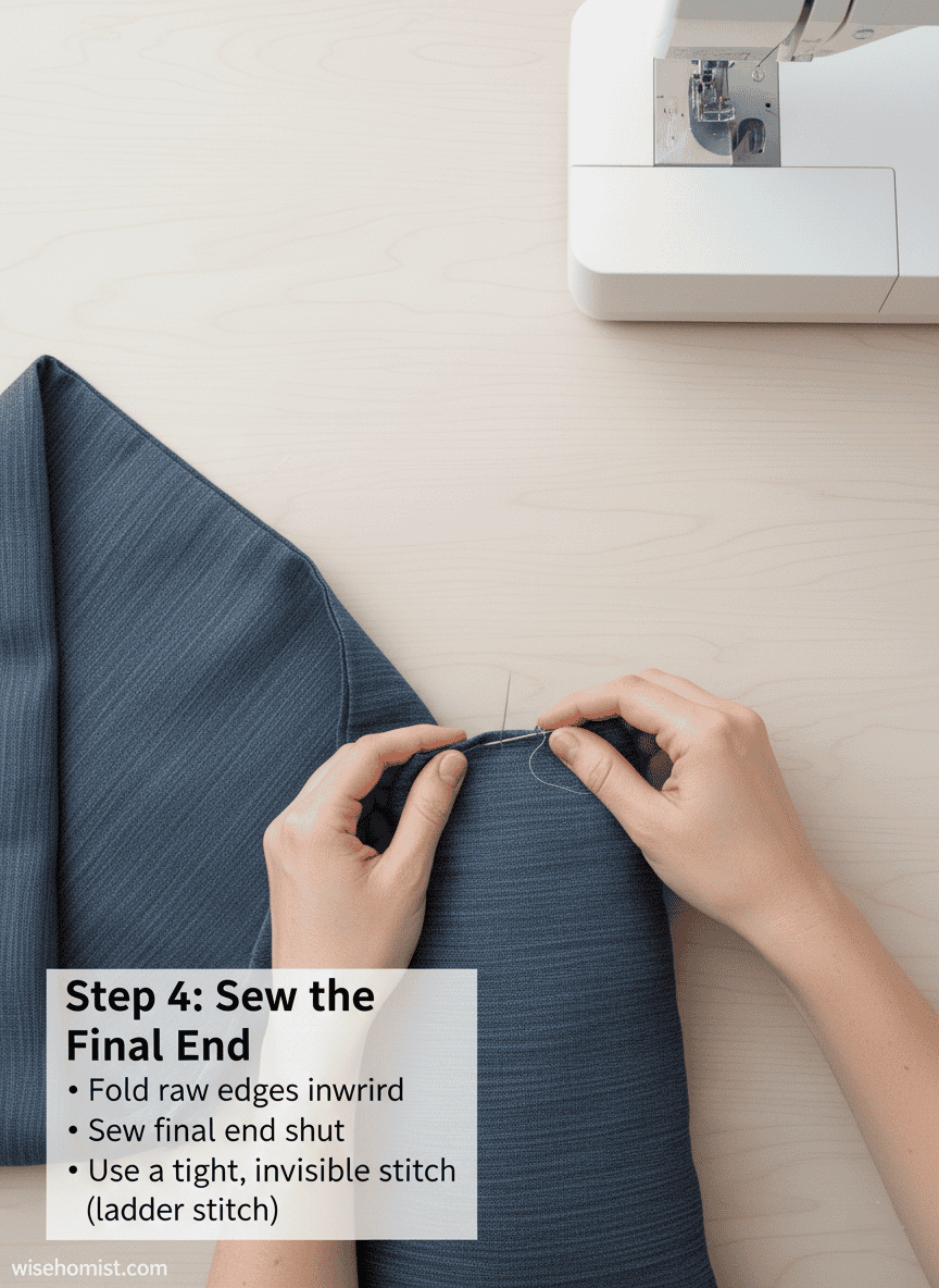 - Carefully sew this final end shut. Since this seam will be visible, you might opt for a sewing machine for a very clean, crisp line, or hand-sew it with a simple, tight stitch (a “whipstitch” or “ladder stitch” works wonderfully here for a nearly invisible finish).